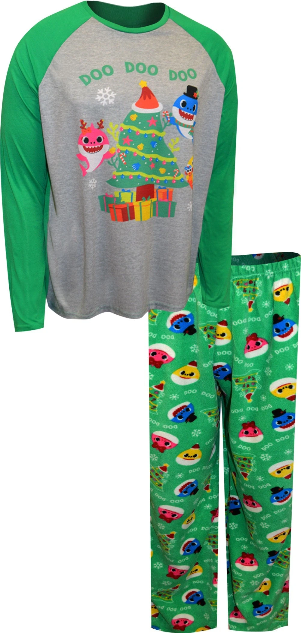 Baby Shark Christmas pajamas for Dad have arrived! These festive pajamas for adult men feature the much loved Baby Shark family with a Christmas theme. The pajama pants are a made from super soft and cozy fleece fabric. The coordinating top is a lightweight fabric.
