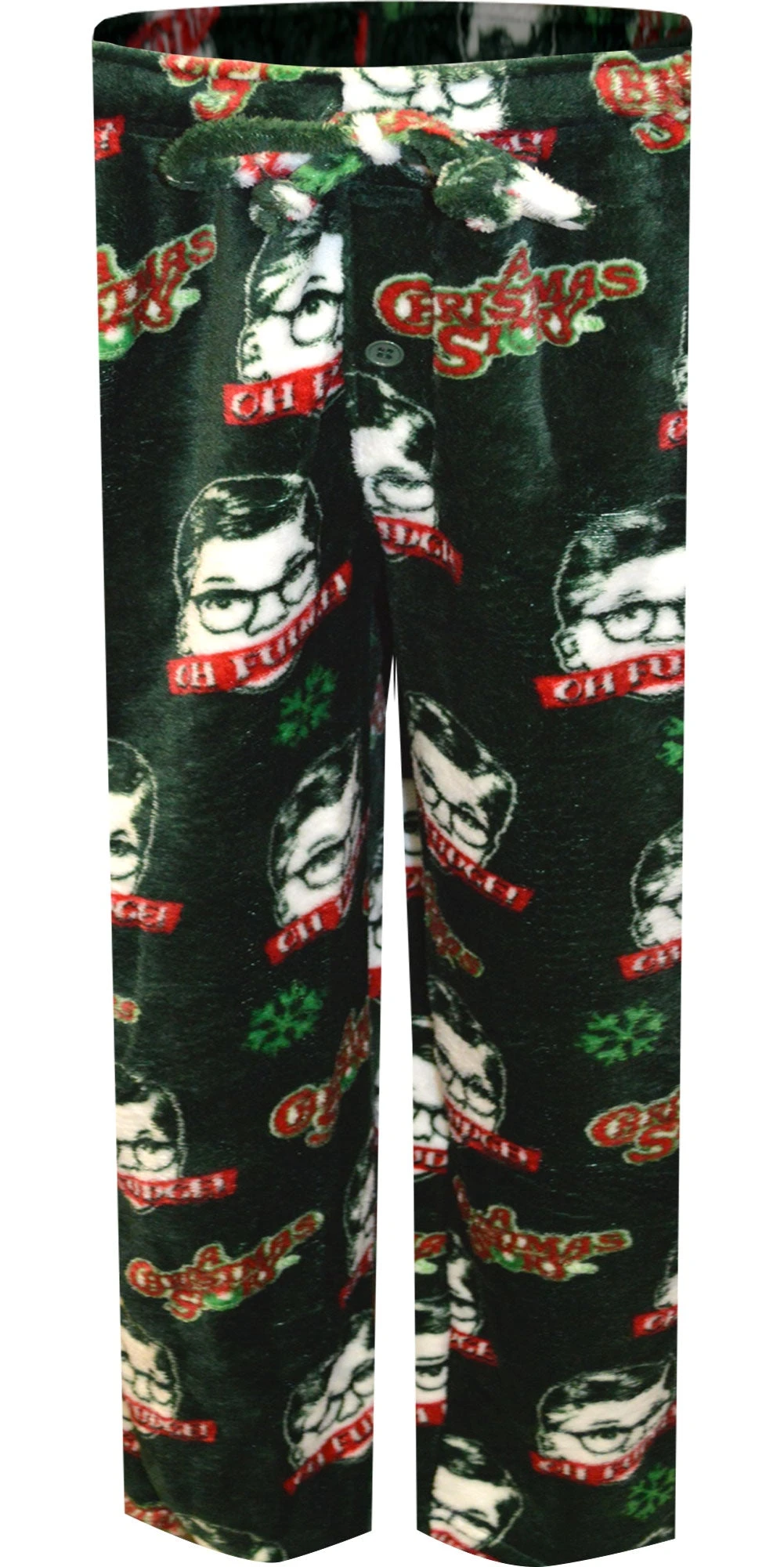 A Christmas must have! These super soft plush fleece lounge pants for men feature A Christmas Story’s famous logo and Ralphie. These soft, warm pants are machine washable with summary fly and covered elastic waistband with drawstring tie.