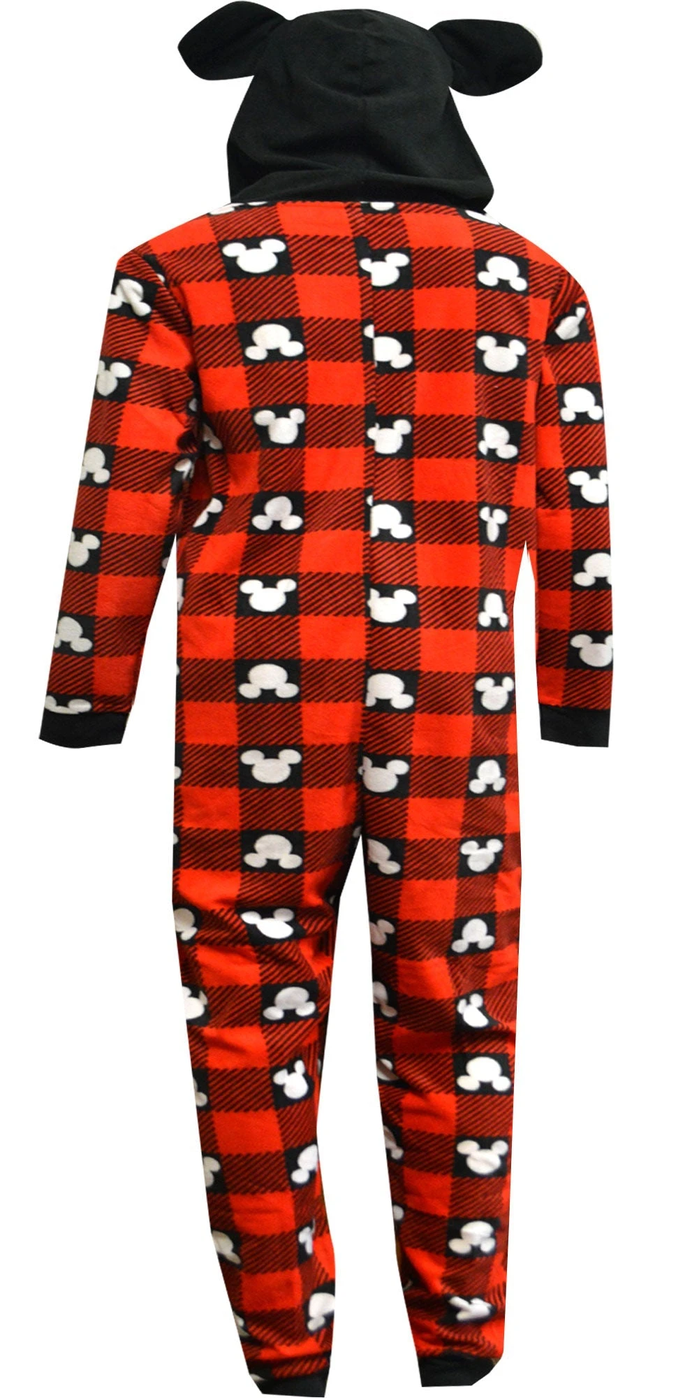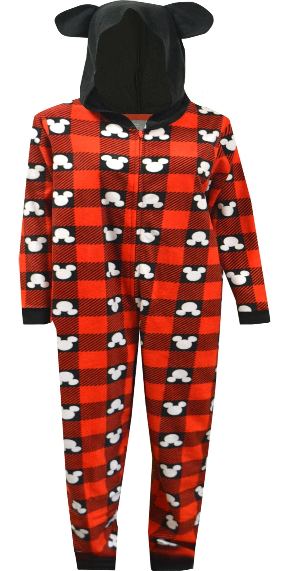 Merry and classic at the same time! These hooded onesies for women men feature our favorite, Mickey Mouse ears in a festive red and black plaid print. The hood actually has mouse ears! Made from a soft 100% polyester fleece, this onesie has a zipper front and cuffed ankles and wrists. Part of a family sleep collection.