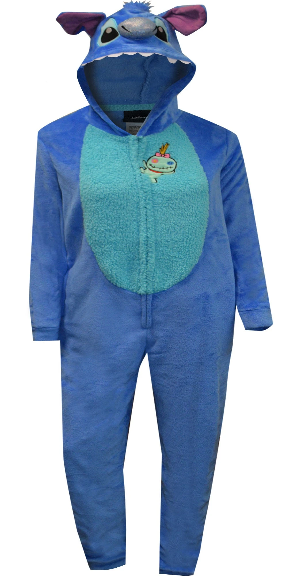 This is classic Disney at its best! These union suits for women feature our favorite character, Stitch from the Lilo and Stitch movie. Designed to look like Stitch, this one piece pj has a hood with a 3D face. The fabric is a super soft velvety plush and is super warm. Missy cut.