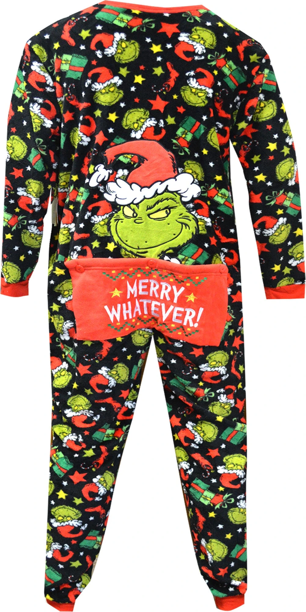 Dr. Seuss Dr Seuss Grinch Merry Whatever Drop Seat Guys Onesie Union Suit(Dr Seuss Grinch Merry Whatever Drop Seat Guys Onesie Union Suit)