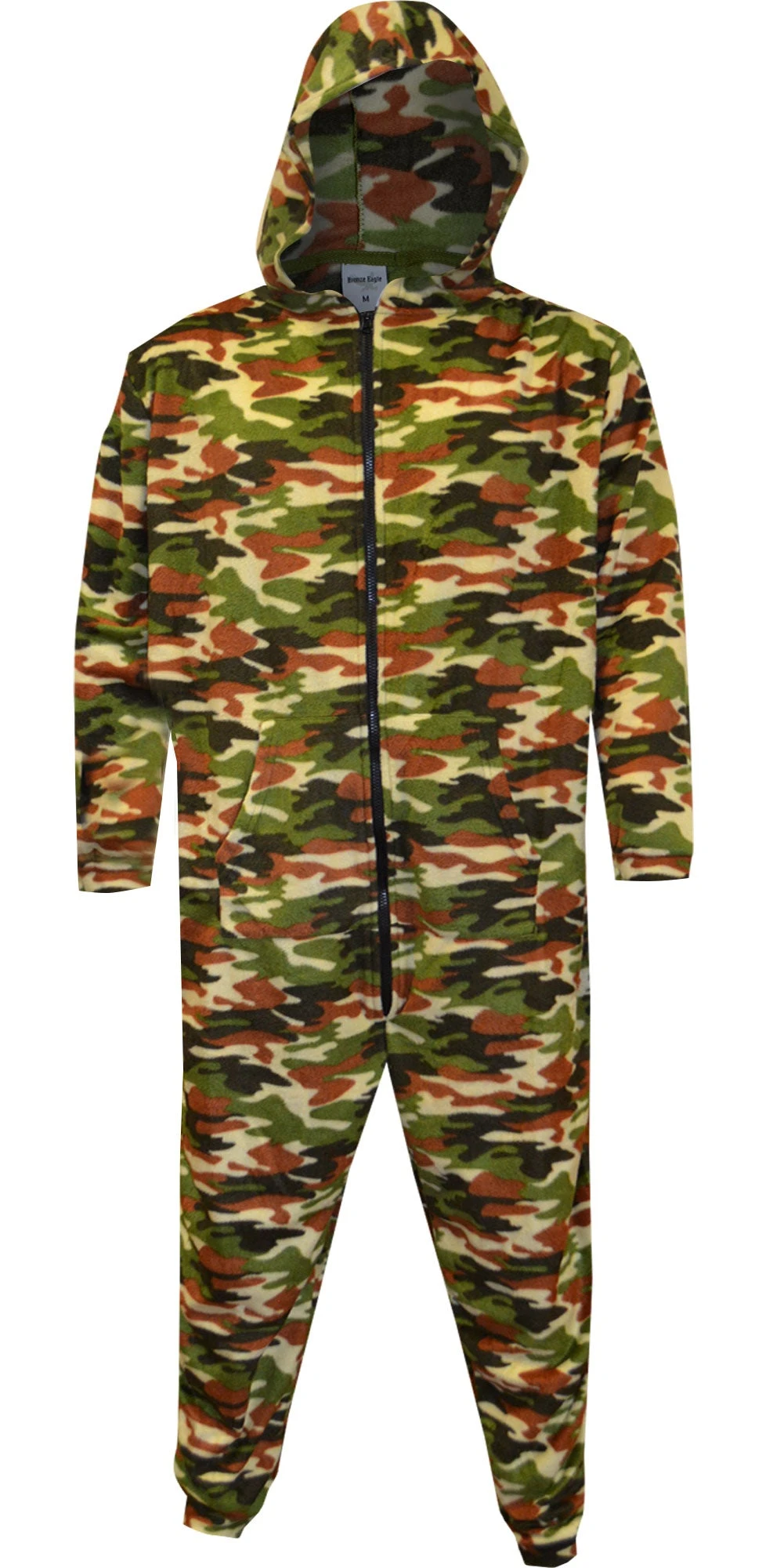Green Camo Print Mens Hooded Fleece Onesie(Green Camo Print Mens Hooded Fleece Onesie)