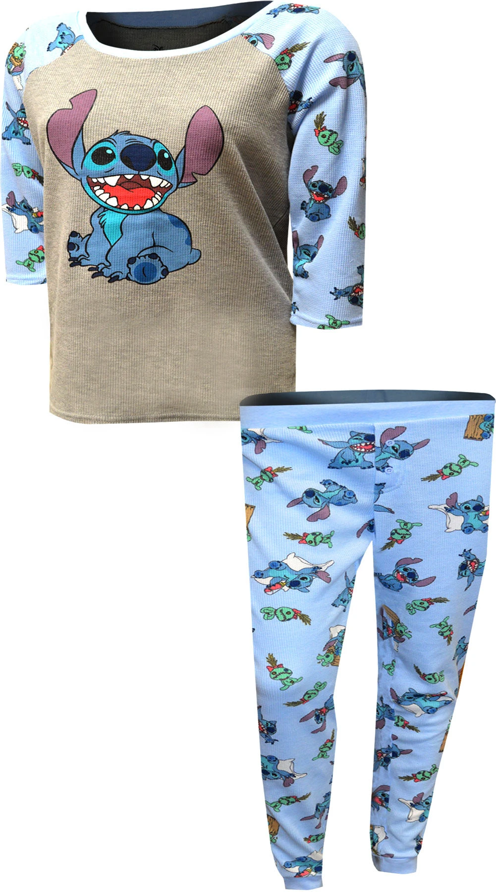Lilo And Stitch Blue Thermal Waffle Pajama Set(Lilo And Stitch Blue Thermal Waffle Pajama Set)
