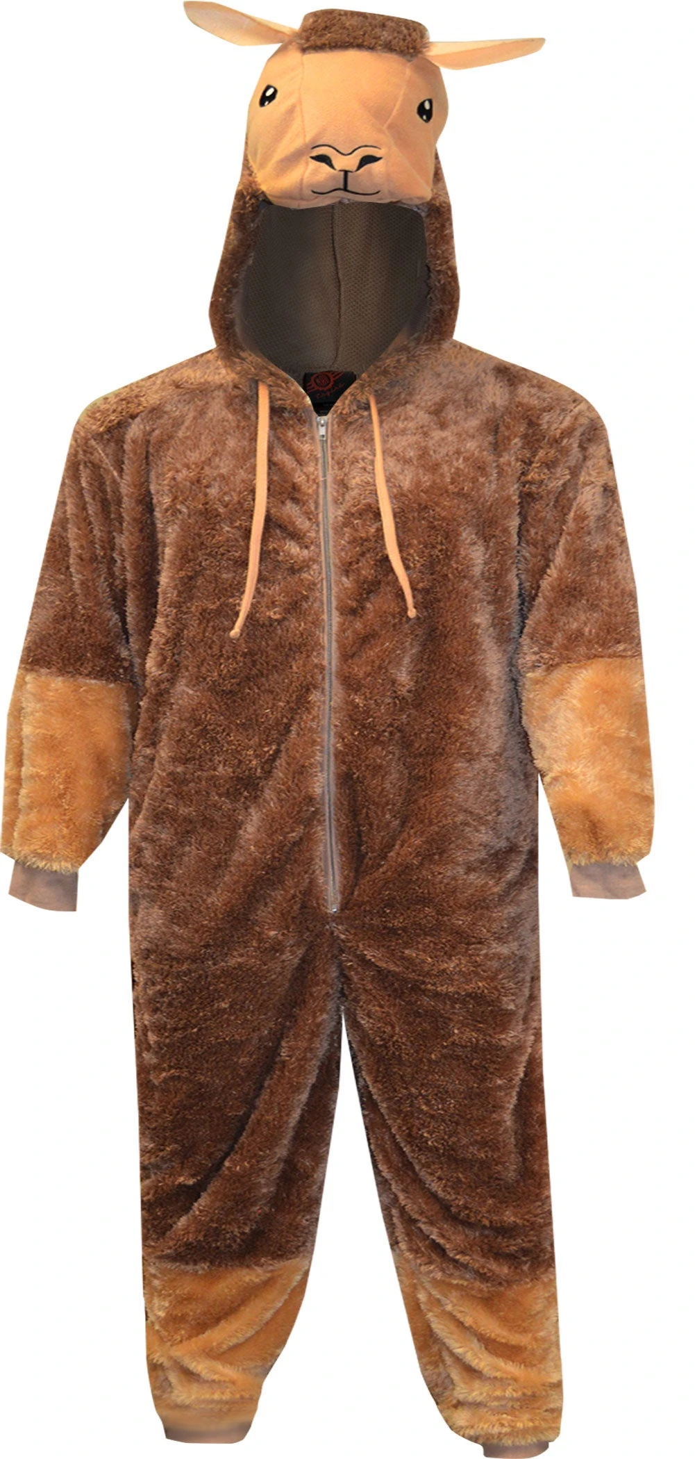 So cozy and really funny! These plush onesie pajamas for men are amazing! The hood has a llama face with ears. This one piece also has a tail and two pockets, everything you need! The fabric on these pajama is furry and soft, more like a llama than you can believe. Perfect for lounging or as a costume and sure to be a hit at the next pajama party!