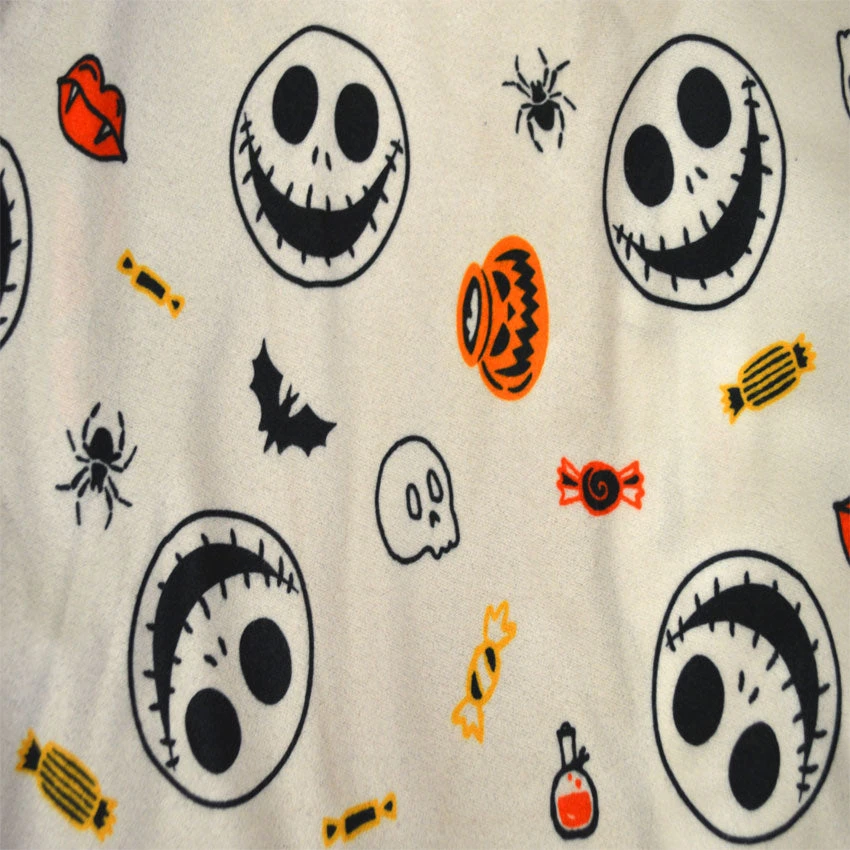 Perfect for relaxing on the couch and watching the Nightmare Before Christmas movie! These awesome flannel pajamas for adults feature the King of Halloweentown, Jack Skellington, with Halloween symbols and candy. Made from a soft poly flannel, these jammies have traditional summary front styling. Perfect from Halloween through Christmas and more!