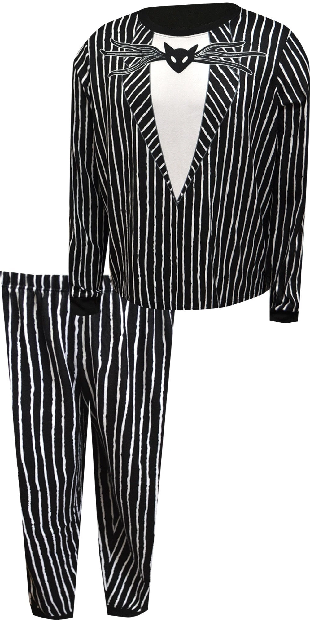 These are awesome! These super soft and cozy silky fleece pajamas for men look like Disney character favorite Jack Skellington from the Nightmare Before Christmas movie. What a great way to be cozy and watch a Disney movie with the family! Machine wash, easy care.