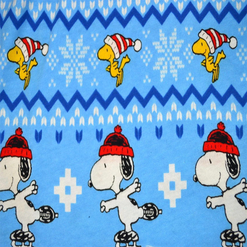 Nothing brings to mind A Charlie Brown Christmas like Snoopy and his dog house, covered with lights! Paired with images of Snoopy and his pal, Woodstock, skiing and ice skating, these boxers have a Nordic background. Open fly and covered elastic waist. Perfect for celebrating the nostalgia of the Christmas season.