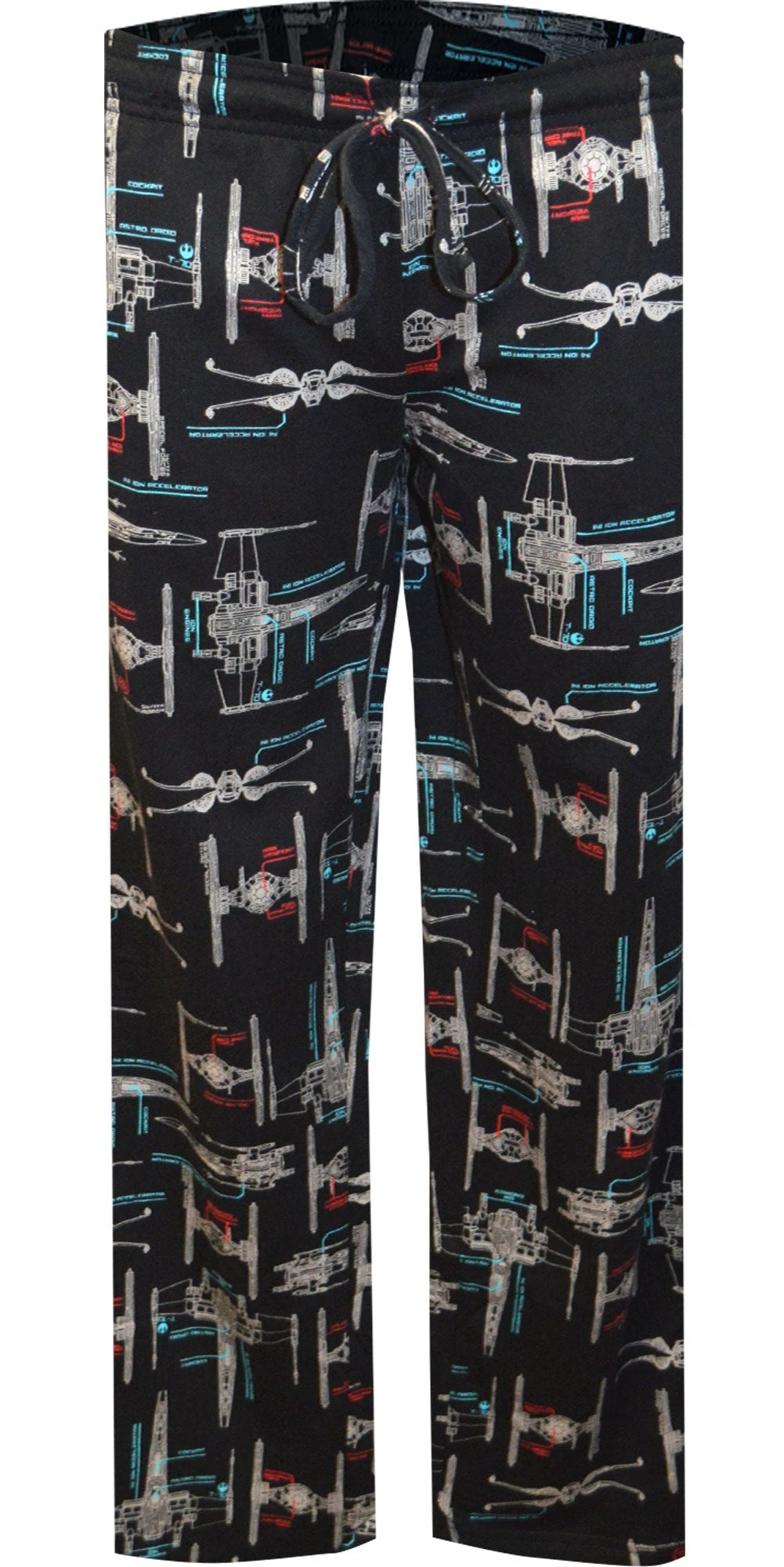 This is the Star Wars lounge pant you have been waiting for! Featuring design sketches of fighters from the Star Wars movies, this super soft cotton pajama pant for women is going to become your favorite. It has a wide elastic waistband with drawstring tie and two pockets.
