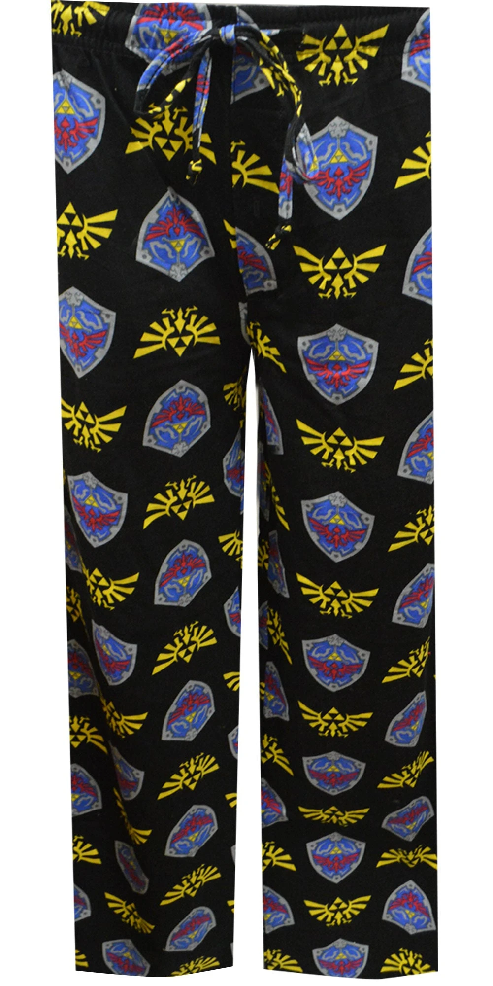 These are so cool! These lounge pants for men feature classic images of Nintendo’s The Legend of Zelda game. These pajama pants are machine washable with a drawstring tie, covered elastic waistband, and side pockets. Pants are 100% cotton, machine wash.