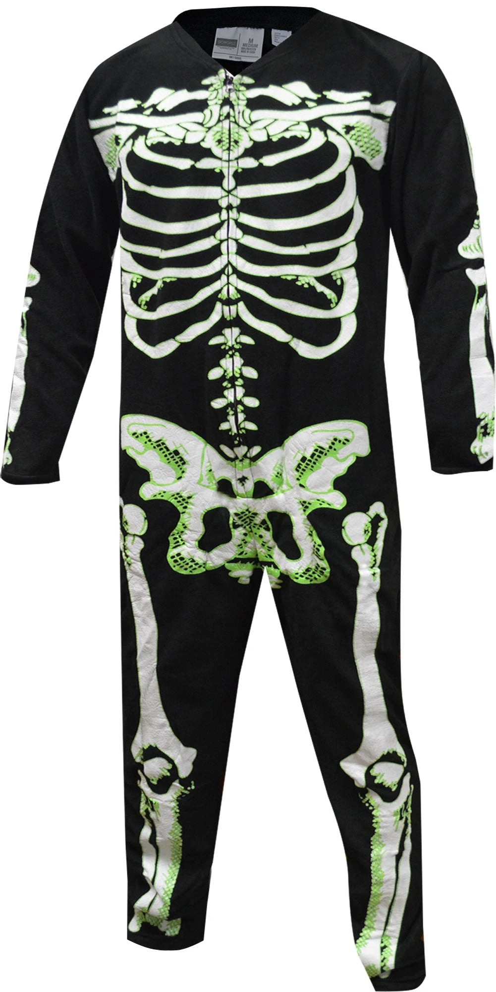 Always wanted to show off who you are inside? These onesie pajamas for men and women feature the bones of a skeleton on a black micro polar fleece background on the front. Back is solid black, and the best part of this pajama is that it glows in the dark! Machine washable and easy care. This great for Halloween, giving to future doctors or just lounging around!