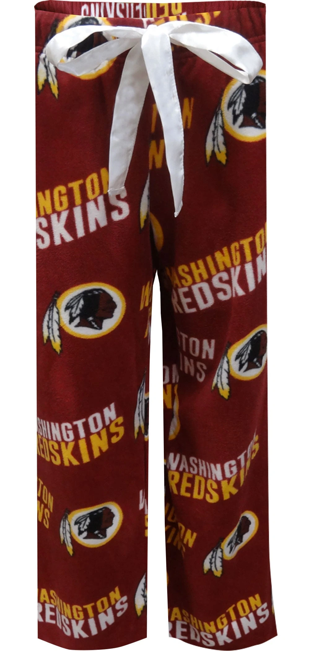 Hail to the Washington Football Team! If you hum that tune in your sleep, you must be a true fan! Show your team spirit with these amazingly cozy fleece lounge pants for women. They are covered with the Washington logo on a classic burgundy background. A white satin drawstring on the elastic waist adds a feminine touch. They are machine washable.